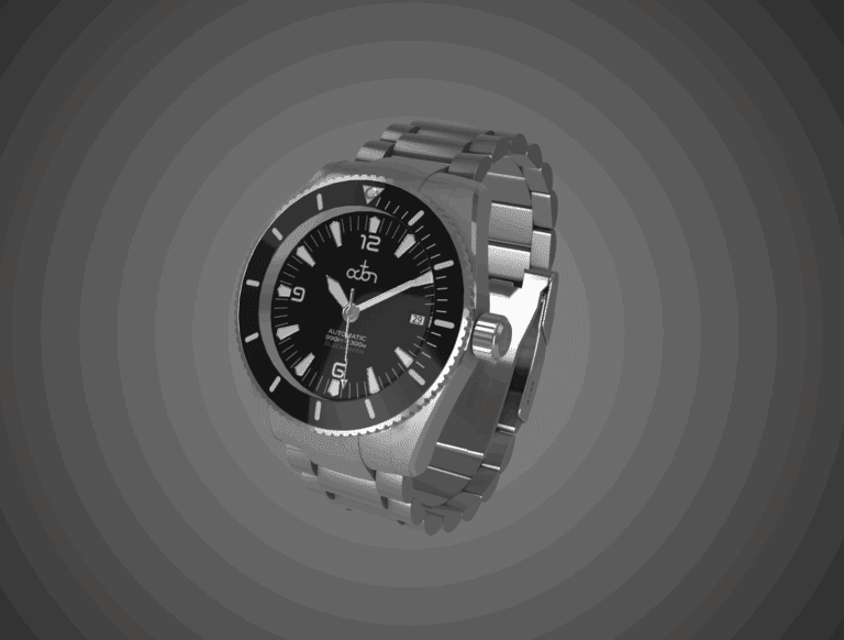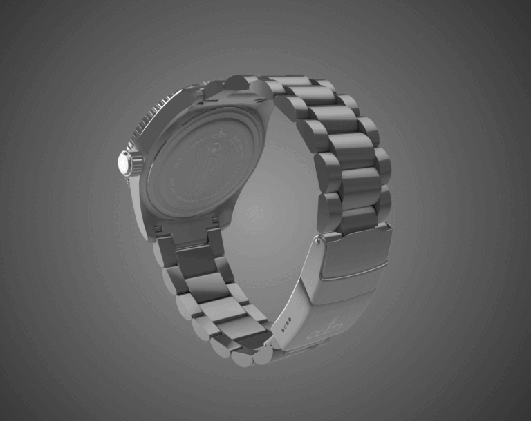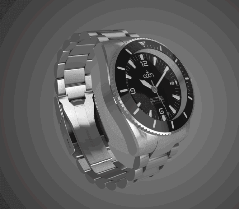 Our approach focused on achieving uncompromising realism while maintaining smooth performance for online interactivity. Every surface — from brushed stainless steel and sapphire glass to the luminescent dial details — was meticulously crafted using physically based rendering (PBR) workflows and HDR lighting for natural reflections. The challenge was to preserve cinematic quality within the constraints of real-time display, balancing polygon density and texture fidelity to deliver a fluid user experience on both desktop and mobile devices.